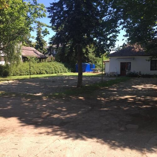 A szépen gondozott, több tíz éves platán fák árnyékában kerti bútorok és egy strandröplabada pálya szolgálják a Vendégek kényelmes pihenését. A gyermekek szórakoztatását homokozó, hinta és mászóka hivatott szolgálni. A kertben továbbá lehetőség van bográcsozásra, grillezésre.